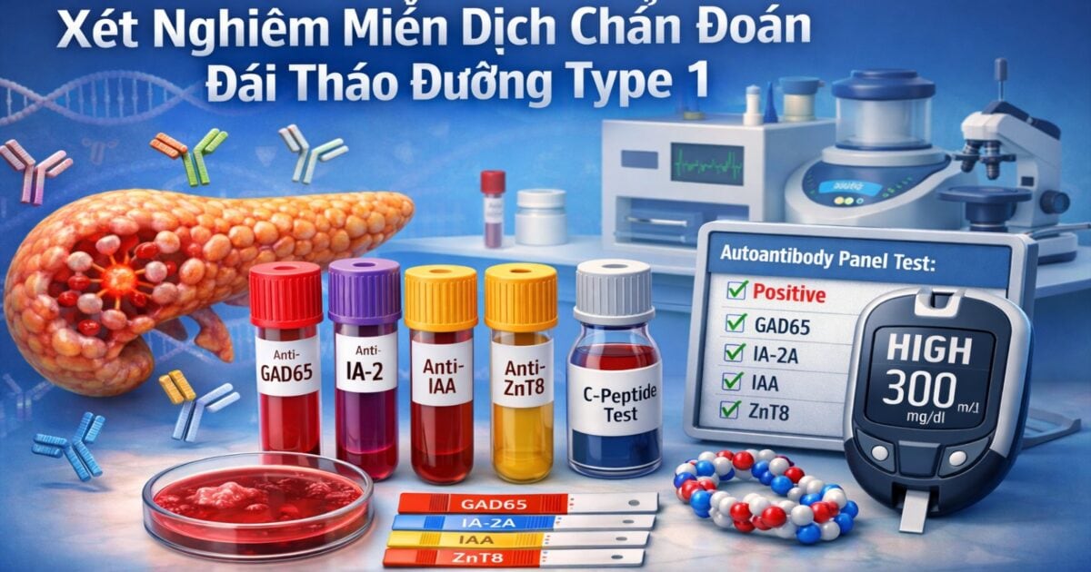 Đái tháo đường type 1 (ĐTĐ T1) là bệnh tự miễn đặc trưng bởi sự phá hủy tế bào beta tụy, dẫn đến thiếu insulin tuyệt đối. Trong thực hành lâm sàng hiện nay, xét nghiệm miễn dịch (autoantibody tests) đóng vai trò trung tâm giúp: